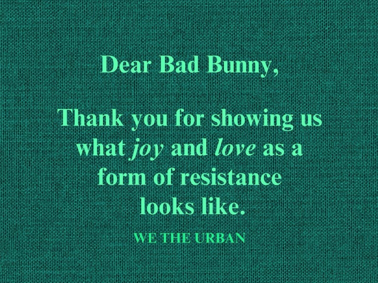I don’t recommend flying through the air and dropping your phone, but I have not been able to take this kind of break from my phone since..well..Midwifery (although we had flip phones back then). I did go onto IG from my laptop after the Benito Bowl. I wanted to see how people were reacting to the performance. Both Bad Bunny’s performance and the vibrations afterwards are proof to me that joy, culture, diversity, and resistance will win. With that, I’ll leave this right here.